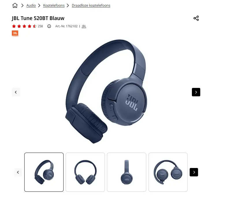 - Aanbieder: Media Markt EmmenJBL TUNE 520BT blauw, wit, paars of zwartMet de JBL Tune 520BT luister je moeiteloos de hele dag naar je favoriete nummers. Deze draadloze bluetoothkoptelefoon heeft een heel licht en ergonomisch ontwerp, zachte oorkussens en een gewatteerde hoofdband. Hierdoor blijft hij comfortabel op jouw hoofd zitten, hoelang je hem ook draagt. En dankzij zijn opvouwbaarheid en batterijduur tot wel 57 uur neem je hem eenvoudig overal mee naartoe. Is de batterij toch leeg? Dankzij de snellaadfunctie heb je binnen 5 minuten laden alweer 3 uur luisterplezier. Zo kom je de dag wel door. € 50,00Categorie: Elektronica