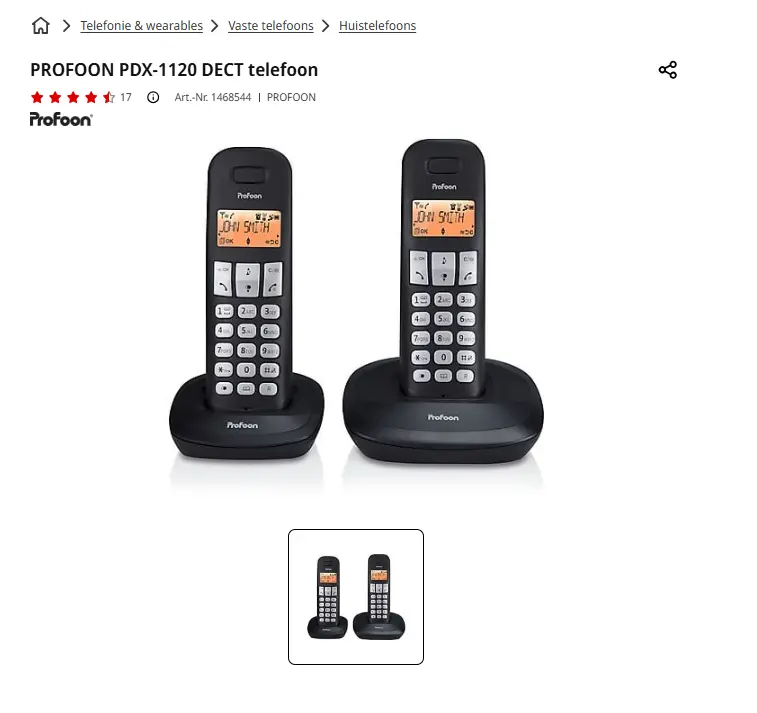 - Aanbieder: Media Markt EmmenPROFOON PDX-1120 DECT huistelefoonDe Profoon PDX-1120 DECT telefoon is een huistelefoon met ruimte voor 20 contacten in het telefoonboek. De handset is voorzien van een verlicht display waarop nummerherkenning, klok en datum worden weergegeven. De huistelefoon-set bestaat uit 2 handsets en is uitbreidbaar met nog eens 5 telefoons. € 50,00Categorie: Elektronica