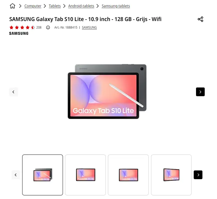 - Aanbieder: Media Markt EmmenSAMSUNG Galaxy Tab S10 Lite -10.9 inch- 128GB -GrijsDe Samsung Galaxy Tab S10 Lite-tablet valt op door zijn slanke aluminium design, verkrijgbaar in grijs, zilver of koraal. Met afmetingen van 25,43 x 16,58 x 0,66 cm en een gewicht van 524 g is hij compact en licht, waardoor je hem gemakkelijk overal meeneemt. Het capacitieve WUXGA+-touchscreen van 10,9 inch (27,69 cm) met een resolutie van 2112 x 1320 pixels is uiterst responsief en biedt scherpe en heldere beelden. Je geniet van een vloeiende en meeslepende weergave, ideaal voor streaming, gamen of lezen. Wat foto's betreft, beschik je over een 8 MP camera aan de achterzijde en een 5 MP camera aan de voorzijde, waarmee je vlot videogesprekken voert of spontane foto's neemt. Of je nu thuis of onderweg bent, deze tablet gaat stijlvol met je mee en biedt je optimaal kijkcomfort. € 400,00Categorie: Elektronica