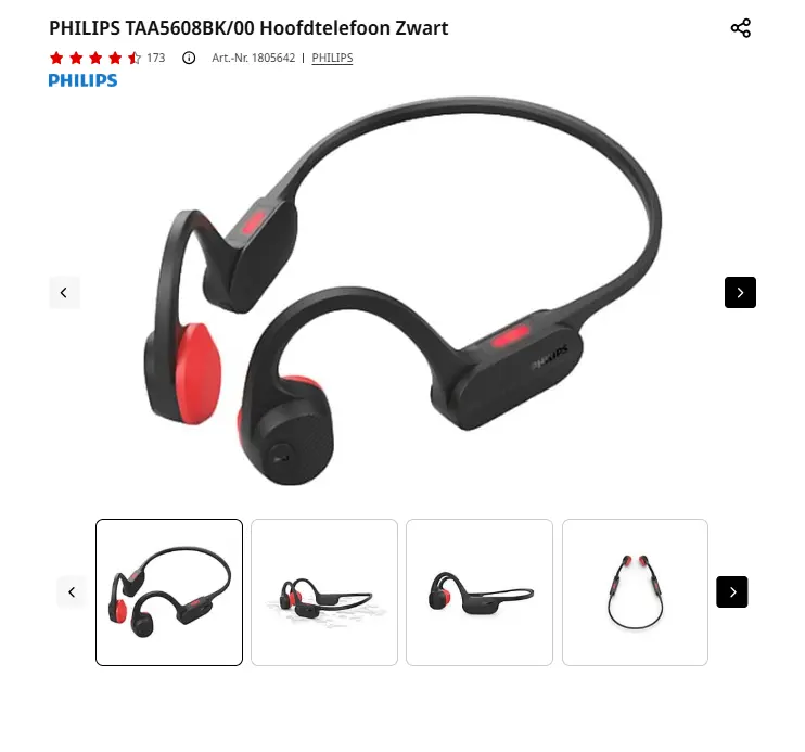 - Aanbieder: Media Markt EmmenPHILIPS TAA5608BKsport Hoofdtelefoon ZwartLuister naar je favoriete nummers tijdens het sporten met de Philips TAA5608BK/00. Deze draadloze open-ear-koptelefoon uit de GO-serie heeft een hele comfortabele, stevige pasvorm die zo licht is dat je hem bijna niet voelt zitten. De nekband gaat achter je hoofd langs en haakt over je oren, zodat de koptelefoon niet heen en weer schuift. Hoe intensief jij ook beweegt, de TAA5608 blijft op zijn plek! De oorkussens rusten op je tragus, dat stukje kraakbeen net voor je oor. Ze bedekken je oren dus niet, maar dat beïnvloedt de geluidskwaliteit zeker niet. Deze koptelefoon werkt namelijk met bone conduction. Deze technologie brengt de audio kraakhelder via je botten naar je binnenoor en blijf je je gewoon bewust van je omgeving. Dat is wel zo handig als er verkeer om je heen is. En ook handsfree bellen gaat helder en eenvoudig. De ingebouwde beamforming-microfoons zijn uitgerust met een AI-algoritme dat achtergrondgeluid verwijdert, zodat jij en je gesprekspartner elkaar duidelijk verstaan. Verder zijn ze IPX5-waterbestendig, zodat ze probleemloos tegen zweet en regen kunnen. Ren je graag in het donker? Gebruik dan de geïntegreerde ledlampjes om goed zichtbaar te blijven. Want veiligheid staat voorop. Koppel je smartphone dus snel en eenvoudig via bluetooth, download de Philips Headphones-app voor uitgebreide bedieningsopties en luister dankzij de krachtige batterij tot 6 uur naar al jouw favoriete artiesten, of je nu relaxt of beweegt. € 50,00Categorie: Elektronica