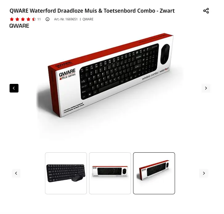 - Aanbieder: Media Markt EmmenQWARE Waterford Draadloze Muis & Toetsenbord Combo - ZwartDe Qware QW PCB-250 (Zwart) bestaat uit een bundel met een draadloos toetsenbord en draadloze muis. Hierdoor kun je comfortabel op afstand werken met een maximum van 10 meter zonder de last van kabels. Het toetsenbord beschikt over 14 multimedia-keys en een indicatielamp voor de status van de batterij. Verder is de draadloze muis voorzien van 1500 DPI voor het uitvoeren nauwkeurige opdrachten. € 25,00Categorie: Elektronica